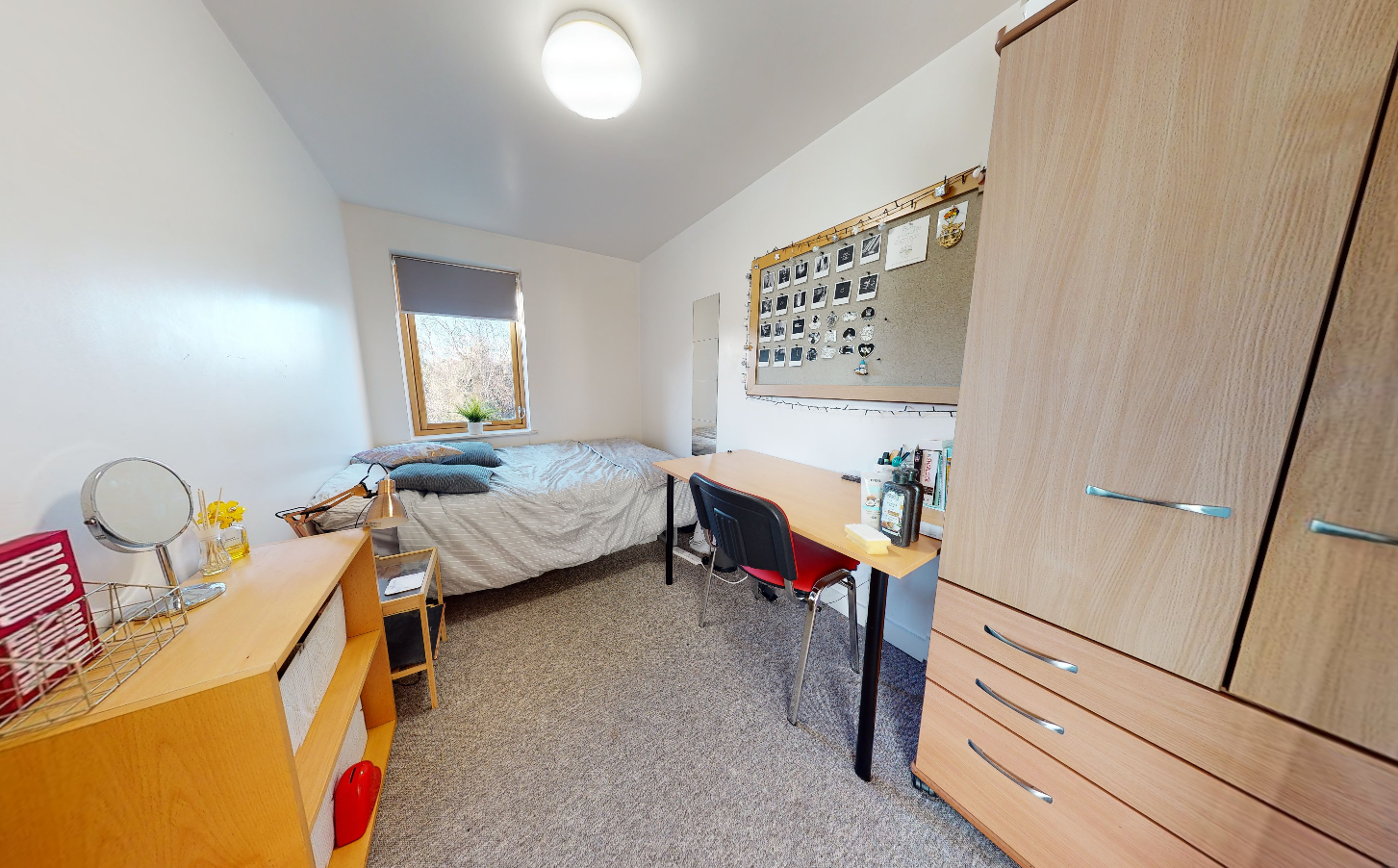 7 bedrooms fully furnished with 4ft bed, desk, chair, shelves and wardrobe