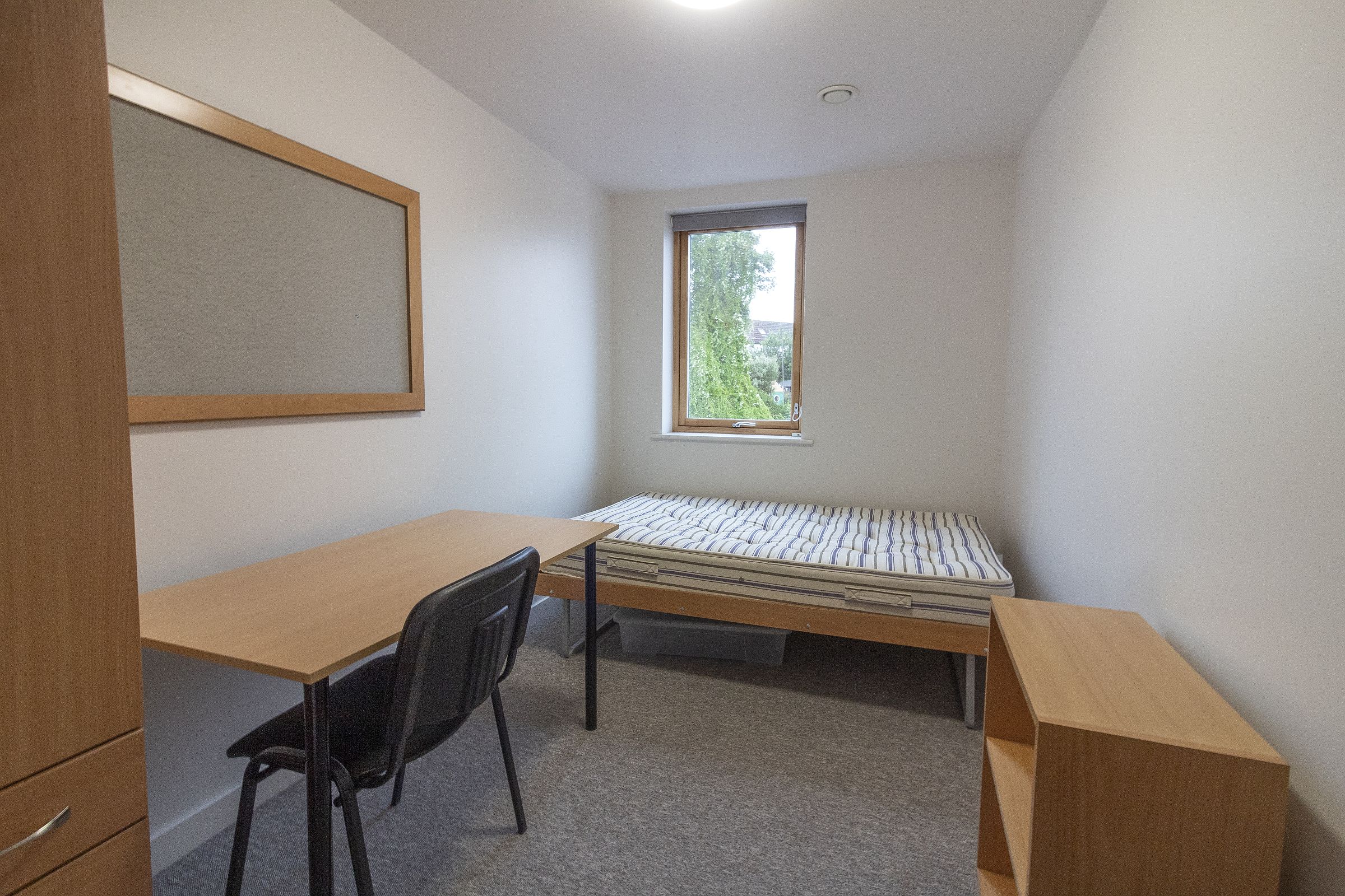 4 bedrooms fully furnished with 4ft bed, desk, chair, shelves and wardrobe