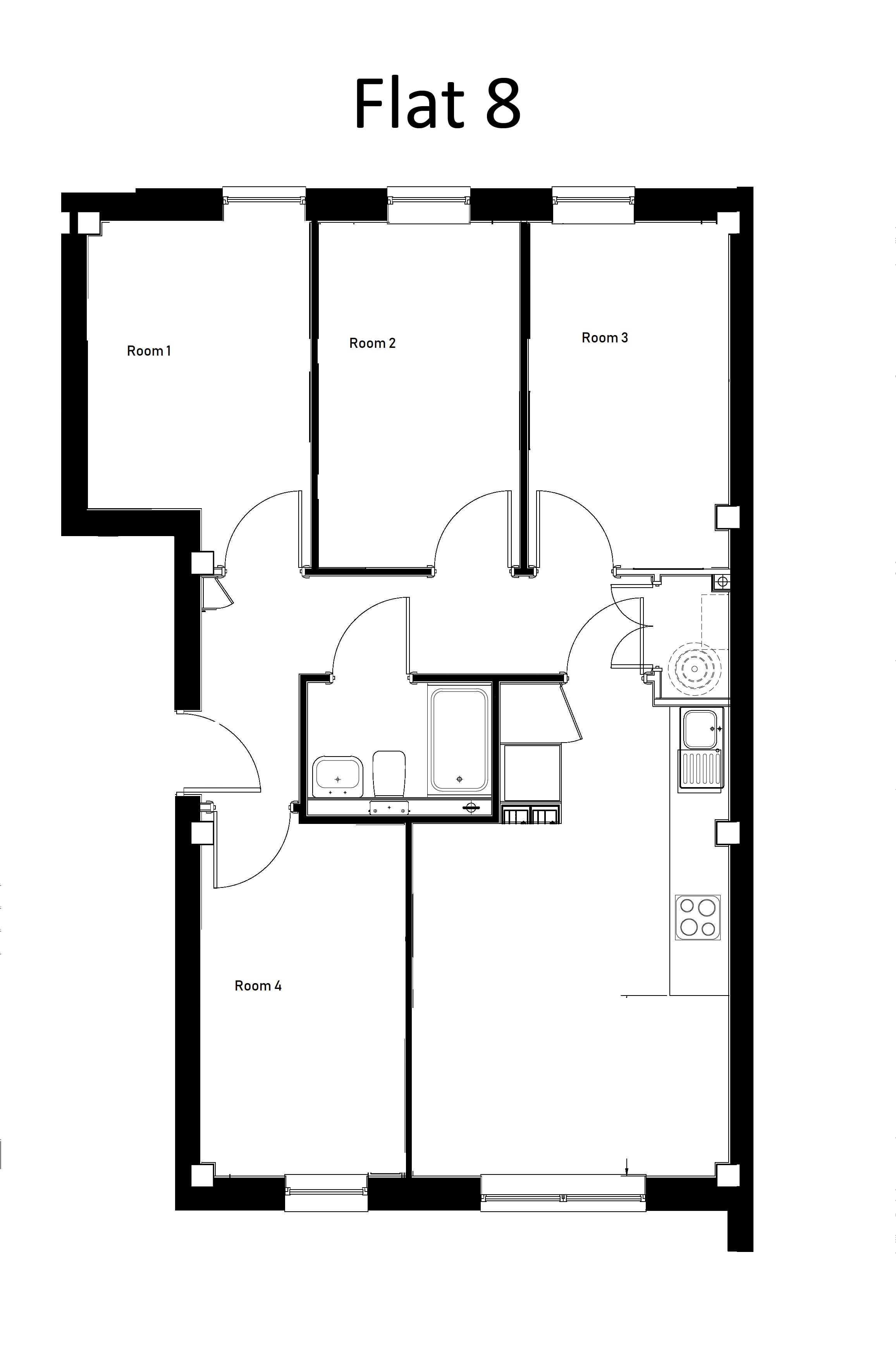 4 bedrooms fully furnished with 4ft double bed, desk, chair, shelves and wardrobe