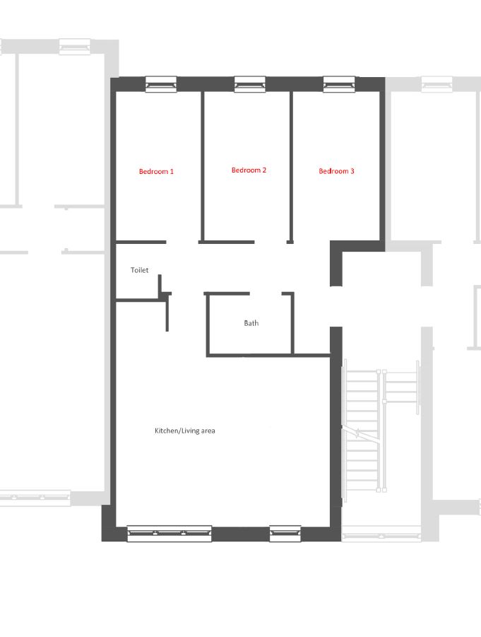 3 bedrooms fully furnished with 4ft bed, desk, chair, shelves and wardrobe