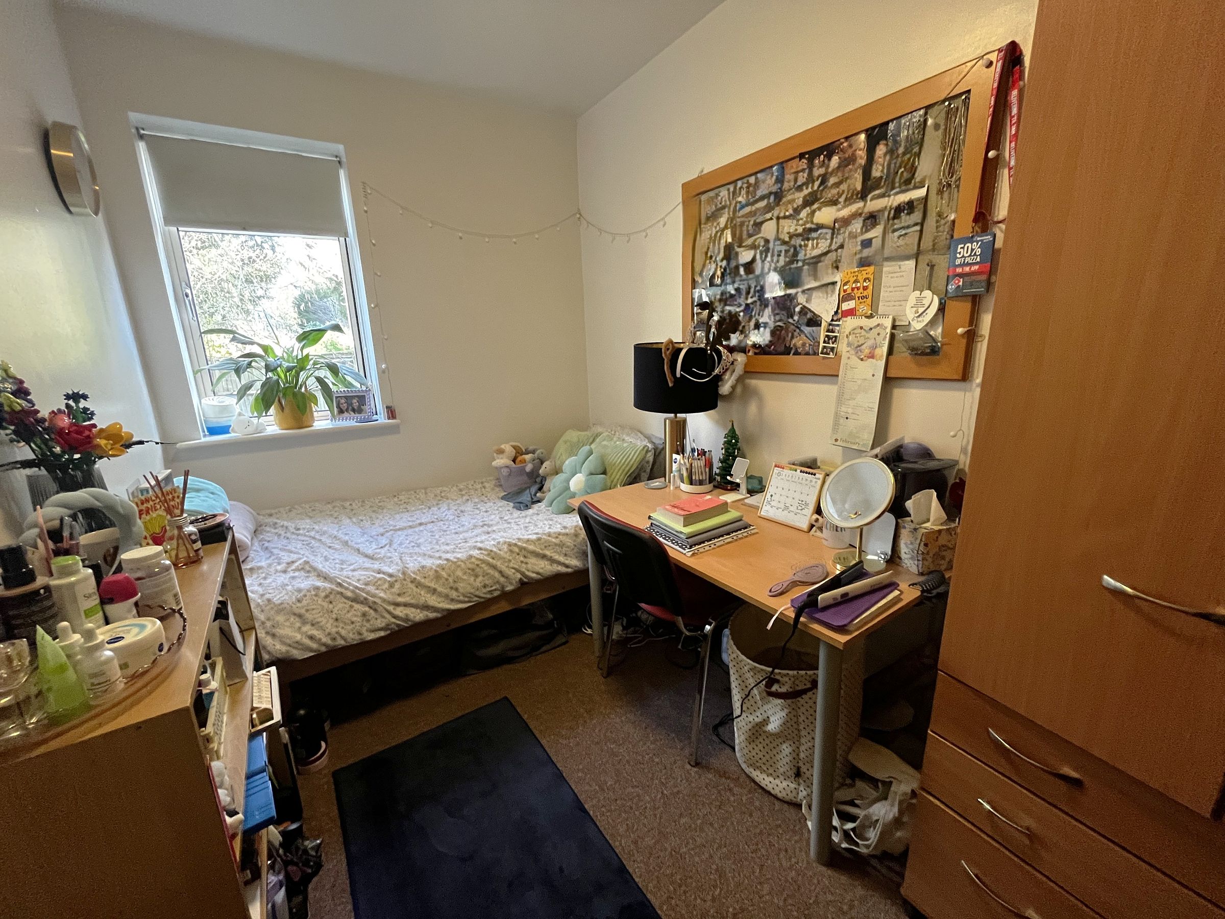 4 bedrooms fully furnished with 4ft double bed, desk, chair, shelves and wardrobe