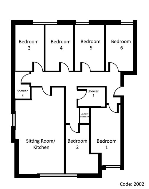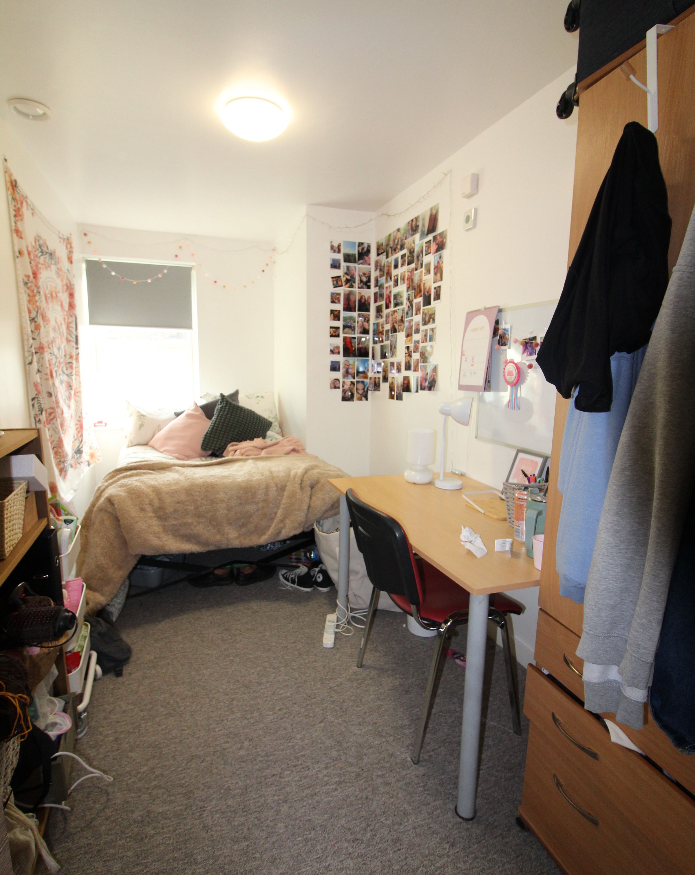 6 bedrooms fully furnished with 4ft double bed, desk, chair, shelves and wardrobe