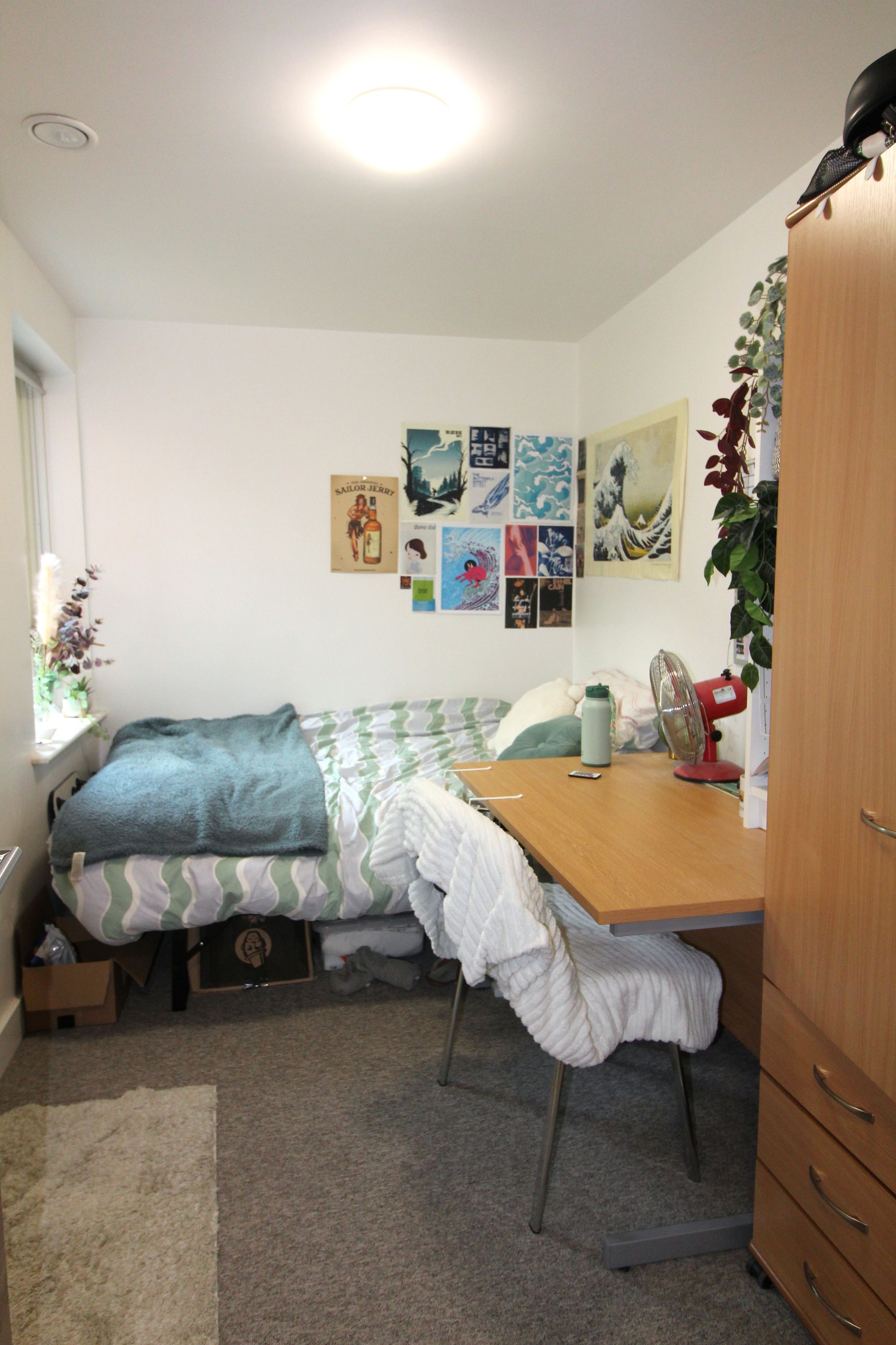 6 bedrooms fully furnished with 4ft double bed, desk, chair, shelves and wardrobe