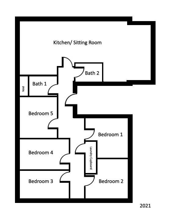 Flat 21 is a spacious 5-bedroom flat on the third floor. Each flat has been designed especially for students and built to a high specification.