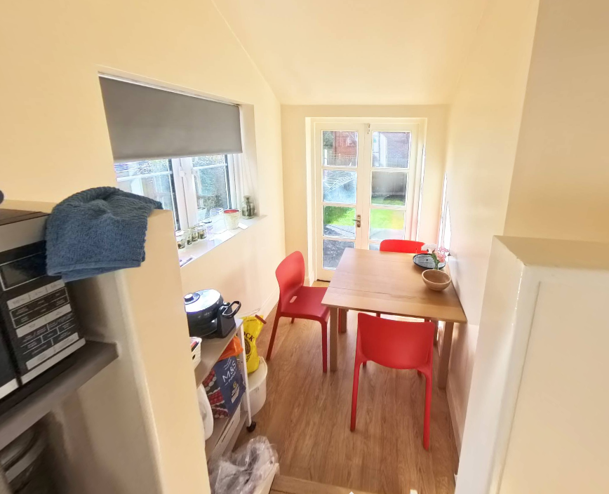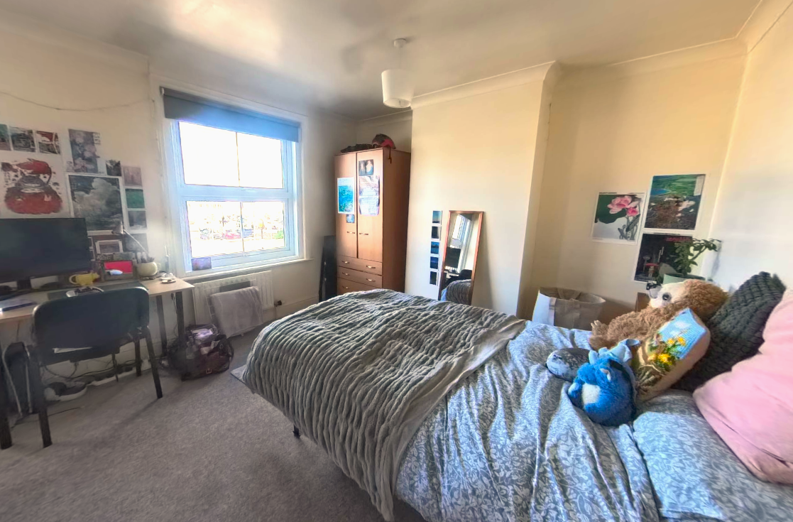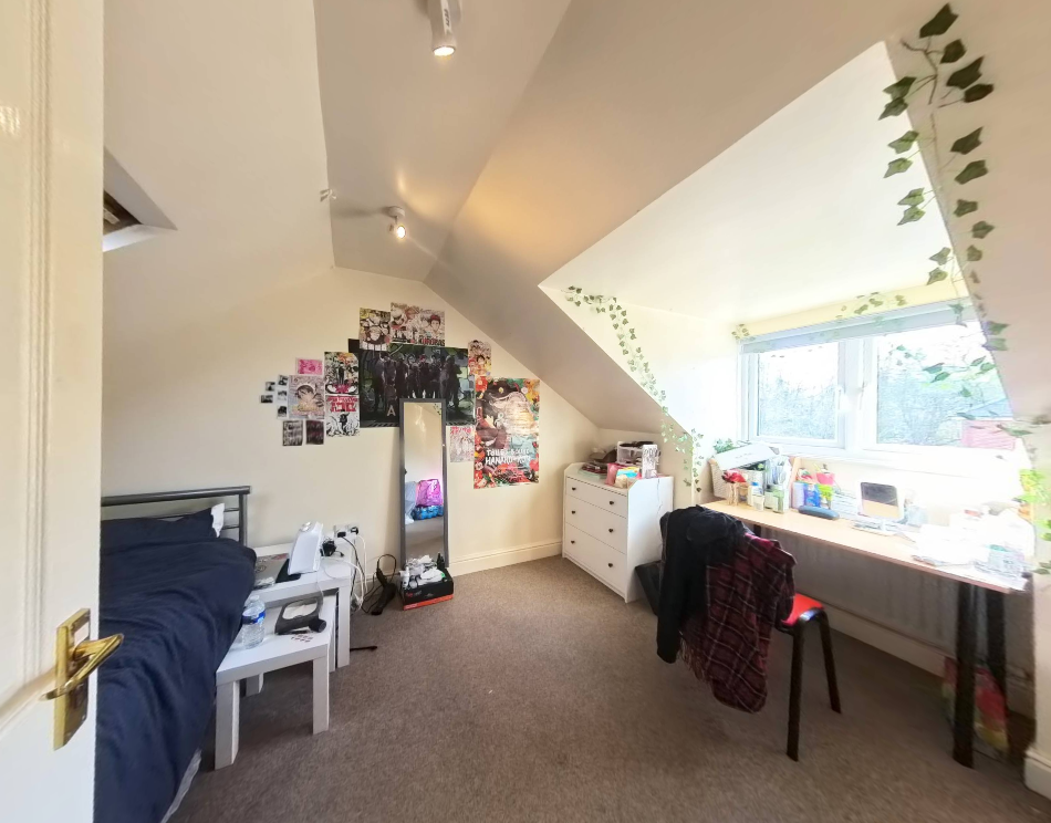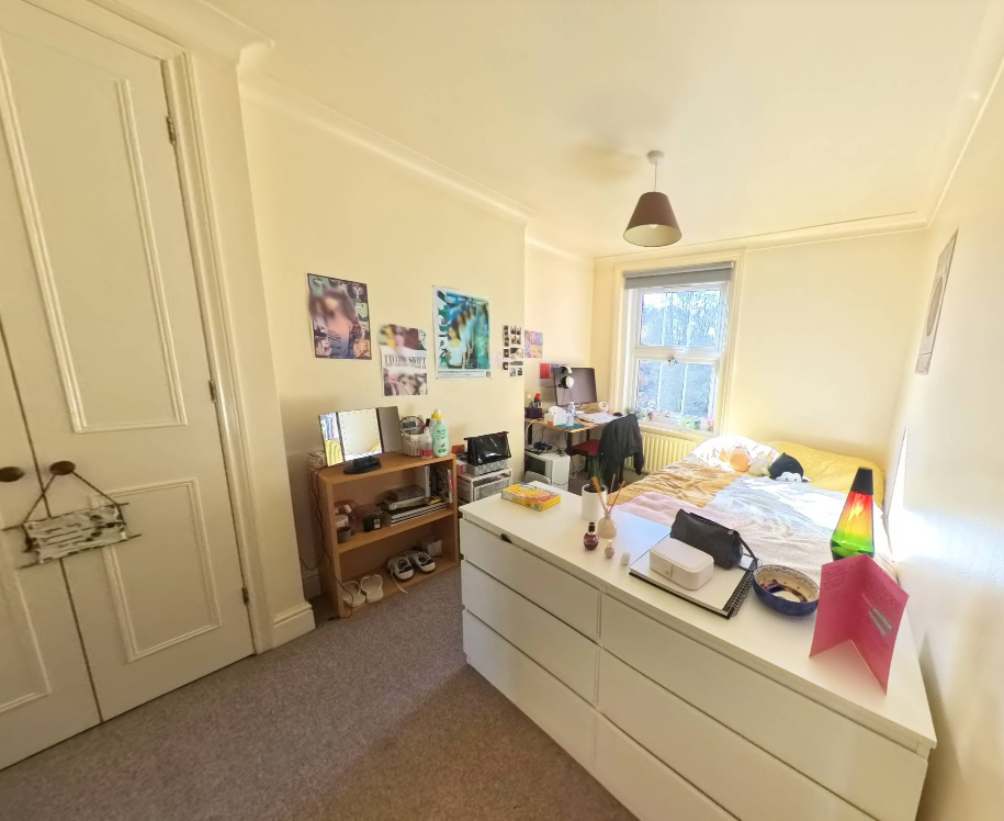 4 bedrooms fully furnished with Small doubles bed, desk, chair, shelves and wardrobe