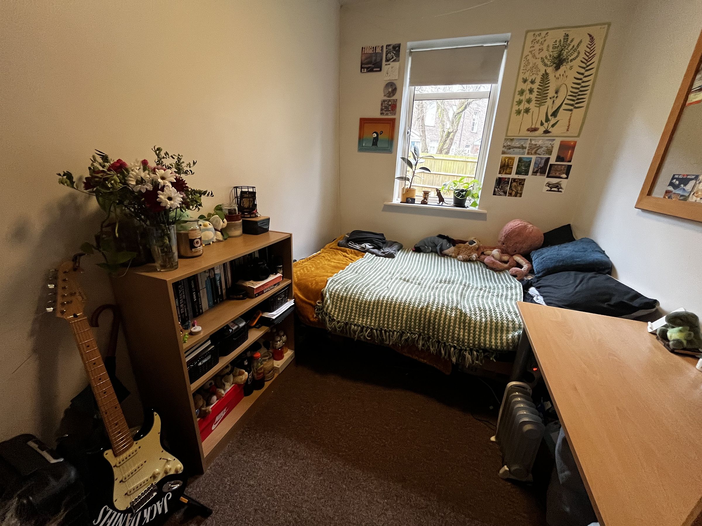 3 bedrooms fully furnished with 4ft double bed, desk, chair, shelves and wardrobe